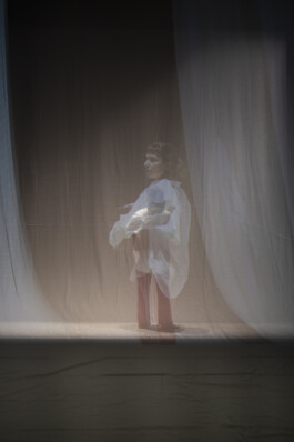IO ATTRAVERSO LEI ist eine bruchstückhafte Erzählung, ein Navigieren zwischen eigenen und fremden Erinnerungen an eine Grossmutter, deren Held*innentaten nicht als Errungenschaften angesehen werden. Mit ihrer zärtlichen, intimen und humorvollen Annäherung an ihre Nonna performt Olivia Ronzani „eine Hommage an weibliche Biografien und vielleicht auch eine leise Feier für sich selbst.“ (Voyeure, Basel). Dabei erforscht und verhandelt sie mit Briefen an ihre Nonna, Gesprächsfetzen mit Verwandten, geerbten Gegenständen, alten Familienfilmen, einer Live-Kamera und italienischen Pop Liedern Geschlechterrollen, Körpergedächtnis und kulturelle Identität aus einer persönlichen und feministischen Perspektive. In einem präzisen und poetischen Zusammenspiel von Raum, Projektion, Licht, Sound, Körper und Erzählung kreiert sie mit ihrem Team einen Assoziationsraum, der Platz für Erinnerungen an die eigene Grossmutter schafft.